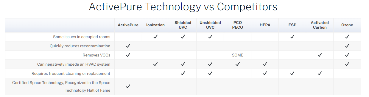 - New and improved ActivePure® Technology Cell works faster to purify the air and surfaces in indoor spaces