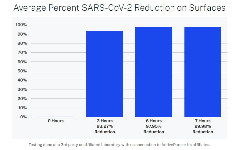 The Pure & Clean uses the same ActivePure® Technology found in the Aerus Hydroxyl Blaster, the product that was proven to reduce 99.98% of SARS-CoV-2 on surfaces within 7 hours.